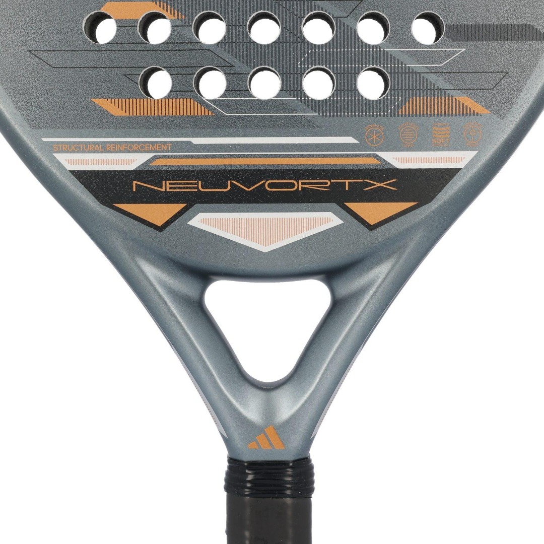 Het padelracket Adidas Neuvortx Cooper is ontworpen om een uitgebalanceerde prestatie te bieden tussen controle en kracht. De ronde vorm zorgt voor een grote en gecentreerde sweet spot, wat resulteert in preciezere en consistentere slag.