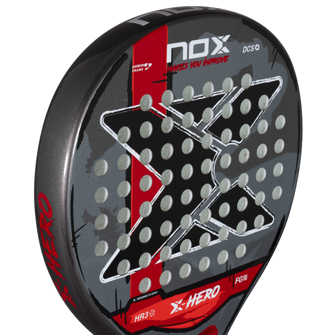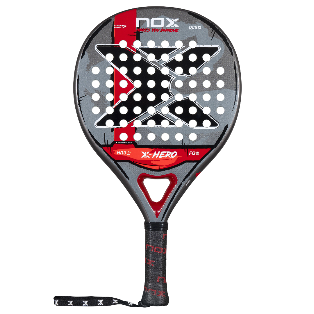 De NOX X-Hero Red is speciaal ontworpen voor degenen die hun eerste stappen zetten in de padel of al enige ervaring hebben en hun spelniveau willen verbeteren. De constructie en technologieën bieden een uitstekende combinatie van controle, comfort en precisie, waardoor het een uitstekende keuze is voor zowel trainingen als de meer veeleisende wedstrijden. Dankzij het ronde formaat biedt het een grote wendbaarheid en een brede sweet-spot, wat zorgt voor een dynamischere en leukere ervaring op de baan.