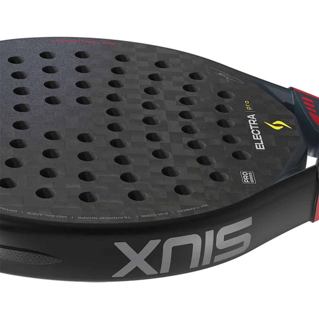 De Siux Electra Pro 2026 Shadow Red is een professioneel padelracket dat is opgebouwd uit carbon en een perfecte balans biedt tussen stevigheid en lichtgewicht. Het geavanceerde ontwerp zorgt voor uitstekende prestaties op de padelbaan, met bovendien krachtige en nauwkeurige slagen. Dit padelracket is ontwikkeld samen met professioneel padelspeler Franco Stupaczuk en is bedoeld voor veeleisende padelspelers welke hun spel naar een hoger niveau willen tillen. Daarbij geschikt voor de speler welke gebruik wil maken van hoogwaardige technologie in combinatie met duurzame materialen.
