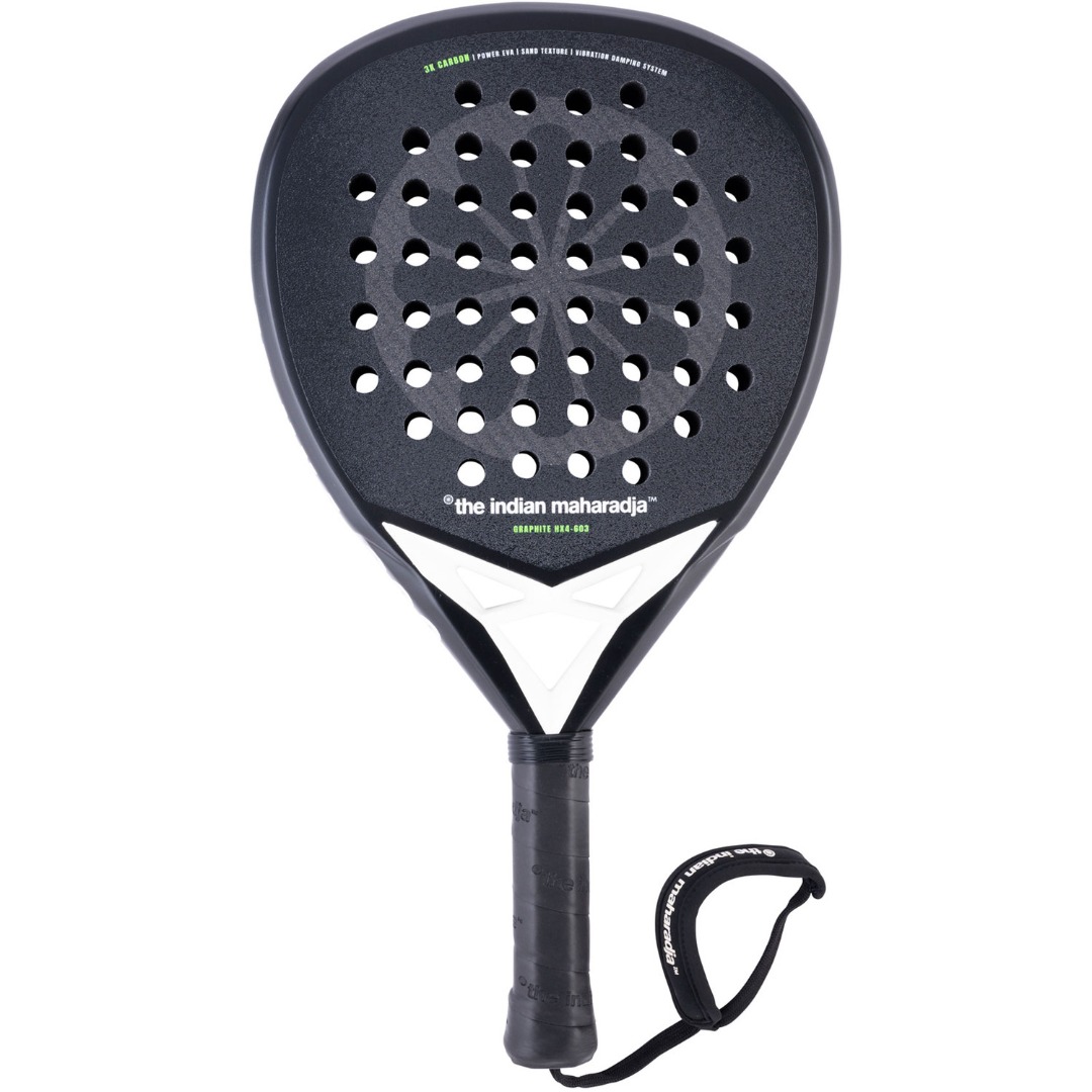 The Indian Maharadja Graphite HX4-603 is een veelzijdig padelracket dat is ontworpen voor ervaren spelers die op zoek zijn naar een uitstekende balans tussen kracht en controle. Het hybride ontwerp combineert de voordelen van druppel- en diamantvormige rackets, waardoor je extra power krijgt zonder in te leveren op controle. Dit maakt het racket geschikt voor spelers die graag hun spel naar een hoger niveau willen tillen.